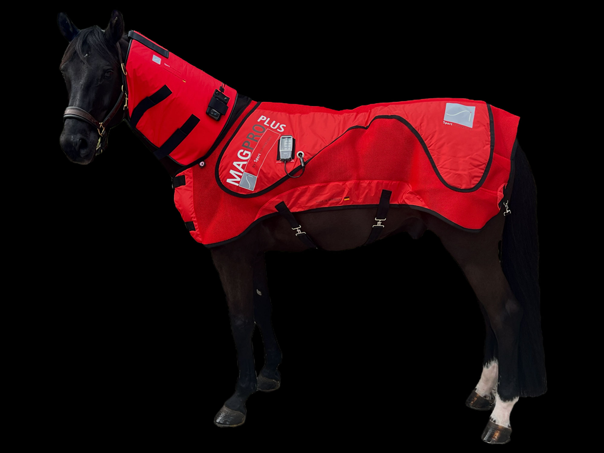 The "PROSERIES 3 IN 1" horse PEMF, massage and heat therapy blanket is used to increase overall wellness and comfort.